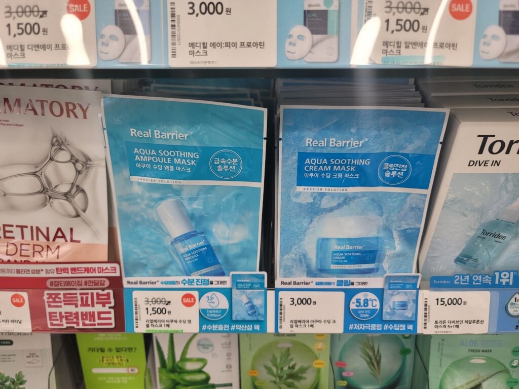 リアルバリアマスクパックは、種類も多いです! オリーブヤングのマスクパックのコーナーにあります~